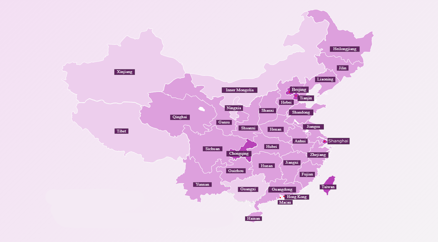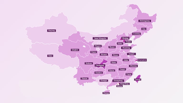 We have designed an interactive map of China to help you explore the country step by step. Simply click on a region to start your journey, then dive deeper into its provinces, cities and cultural highlights.