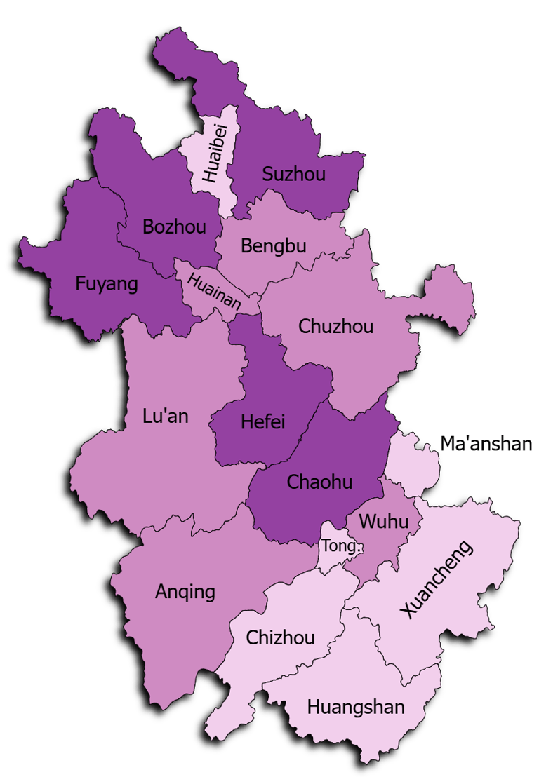 Jianghuai Mandarin (north) dominates Hefei and the northern plains.