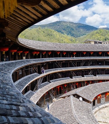 Fujian is located along the southeastern coast of China, facing Taiwan across the Taiwan Strait and bordered by Zhejiang, Jiangxi, and Guangdong. The province features rugged mountains, coastal plains, and numerous islands. Fujian is known for its maritime culture, tea production such as Tieguanyin, Hakka tulou architecture, and strong overseas Chinese connections.