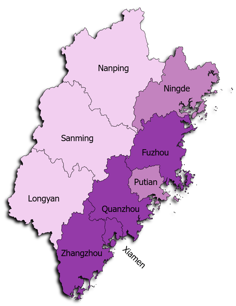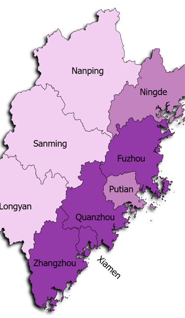 The capital, Fuzhou, is an administrative and cultural center with a history of shipbuilding, tea trading, and traditional gardens.
