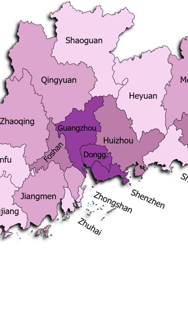 Zhuhai, near Macau, is known for its coastal resorts and high-tech industries, while Dongguan and Foshan are centers of manufacturing, particularly in electronics, textiles, and furniture.