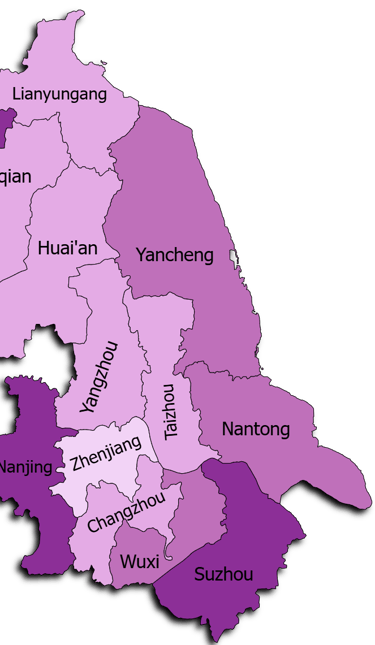 logistics centers. Other key cities include Changzhou, known for heavy industry, and Taizhou, with river and coastal trade significance.