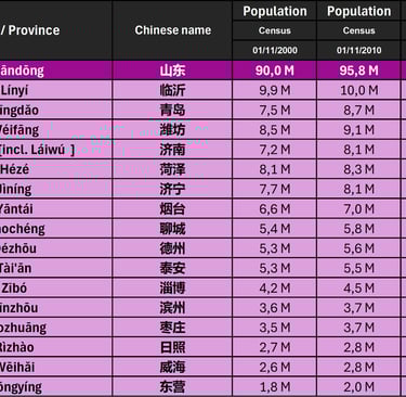 Shandong is located on China’s east coast, facing the Yellow Sea and bordering Hebei, Jiangsu, Anhui, and Henan. The province combines coastal plains, mountains, and rivers, including part of the Yellow River basin. Shandong is known for its Confucian heritage, strong manufacturing base, and historic role in Chinese culture, philosophy, and education.